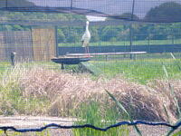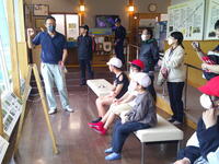 足を洗い一息ついた後、再開したばかりの「こうのとりの里」を訪れて見学し、コウノトリについてのいろいろな説明を聞きました。また、今日は施設の外にいる野生のコウノトリ(やまと くん)の姿を見ることもできました。