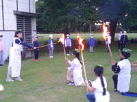 夕食後は、二ツ塚小・福一小と合同でキャンプファイヤーを行い、ダンスやゲームを大いに楽しみました。校長がファイヤーキーパーを務め、引率者が児童についていたので写真をほとんど掲載できず申し訳ありません。