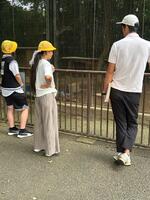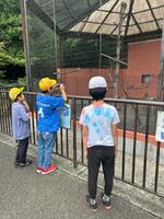 キャンプファイヤーを終えてから、入浴~反省会を経て1日目の予定を無事に終えることができました。体調不良者もなく、みんな元気でした。疲れからか、ぐっすりとよく眠ることができ、みんなで朝食を食べた後は、隙間の時間を使って「あすなろの里」の中にあるふれあい動物園を散策しました。