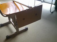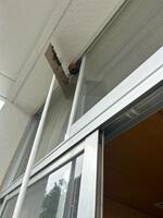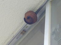 林間学校から戻ってきたら、「放送室(3階)のベランダ上部にハチの巣ができています。」との報告があり、確認しに行きました。放送室から見上げると、初期(徳利状の形状)~中期(よく見るスズメバチの巣の形)に移行したばかりのキイロスズメバチのハチの巣ができていました。「業者さんにお願いしますか?」と言われましたが、そんなもったいないことはできません。ネズミ取り用の粘着シートを使って、手作り駆除用具を作成。本当は、とどめを煙燻で…と思っていたのですが、30数匹の小さな巣だったので粘着シートだけでハチ除去及び巣の撤去を完了。実際に開始してからの所要時間は、5分ほどでした。
