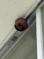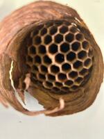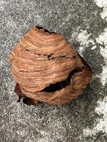 今回は、まだ一段だけの本当に小さな巣でしたが(それでも30匹以上いる)、放っておくと2層⇒3層…最大6層くらいまで成長、巣全体の大きさも今回は直径10cm強程度でしたが70cm以上くらいまで大きくなります。