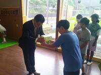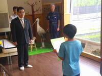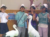 今日は、今までに集まった募金26,689円を、鈴木 有 市長に手渡し、コウノトリのえさ代として贈呈しました。施設の方々も、市長さんも、大変喜んでくれました。施設内では、この5月に生まれたばかりの2羽の幼鳥(ただいま愛称募集中)とお父さんのコウくんを観察しました。また、帰り際には参加した6年生を見送るかのように電柱の上にとまったヤマトくんを見ることもできました。