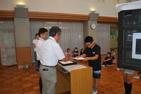 夏休みの太鼓部の活動も4回目を数え、今日が最終となります。毎日の練習の成果でしょう、「たった4日」ではなく「されど4日」です。素人が聴いてもわかるくらい、上達しました。前回の練習時に書いた「魅せる太鼓」に着実に近づいています。3年生も別室で、拍を取る練習を重ねていました。