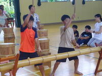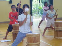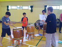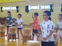 夏休みの太鼓部の活動も4回目を数え、今日が最終となります。毎日の練習の成果でしょう、「たった4日」ではなく「されど4日」です。素人が聴いてもわかるくらい、上達しました。前回の練習時に書いた「魅せる太鼓」に着実に近づいています。3年生も別室で、拍を取る練習を重ねていました。