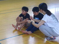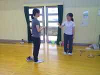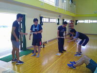 夏休み中は、教職員にとっていつもより時間を取って、研修に取り組むことができる期間でもあります。21日(金)には今年度より開設した通級指導教室の取り組みや指導の内容等について、担当の山口教諭を講師として研修を行いました。今日は、体育主任の吉岡教諭を講師として、体育実技の研修を行いました。