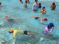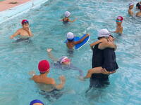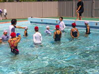 本日も天候に恵まれ、夏休み水泳教室を無事に実施することができました。今年度最後の水泳指導であり、6年生にとては小学校生活で最後の水泳学習となります。水慣れの後、本日も5・6年生に協力してもらい、「浮いて待つ」練習に時間を割きました。水泳指導の本質は、水の事故から自らの命を守ることにあるのだと思います。(もちろん、危うい状況にならないことが一番良いのですが)自由時間には、今日も子どもたちの笑顔と歓声があふれていました。今年度の水泳指導を事故なく無事に終了することができました。保護者の皆様のご協力に感謝いたします。