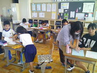 担任の吉田先生がお休みだったのですが、6年生担任の吉岡先生が、(専科授業の)空き時間を使って授業を進めてくれました。6年生⇒1年生で戸惑いはあったのかも知れませんが、さすが1年生担任の経験者です。やさしく、そして丁寧に、どの言葉に注目すれば秘密がわかるのかをしっかりと教えてくれました。吉岡先生、ありがとうございます。