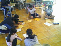 創立150周年記念のかるたを、たてわりグループ活動で作成しています。読み札の言葉を考えてから、その言葉に合う絵を考えて、A4サイズの大きさで作成します。今日のロング昼休みが2回目の活動でしたが、グループごとで特徴が違ていて面白かったです。どのグループにも共通して嬉しかったことは、子どもたちがとても楽しそうに、そして仲良く活動していたことと、6年生が下級生たちの面倒をしっかりと見てくれていたことです。