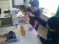<理科室…プラ板準備⇒試し焼きで作品も作っていました>