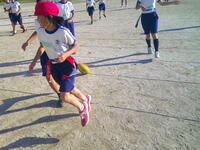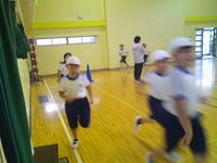 生憎の天気で、持久走記録会の試走も延期となり、外での運動はできませんが、3・4年生が体育館で体育の学習を行っていました。まずは、来週に延期された試走、月末に予定されている持久走記録会本番に向けて、体育館内で持久走練習を行いました。狭い体育館だからなのか、始める前の坂野先生の言葉が効いたのか、普段の外での持久走練習時よりペースがかなり速い子が多かったです。その後、先日NECグリーンロケッツの方々から教わった「タグラグビー」の学習から、タグ取りの鬼ごっこを行いました。ちょっと仕様が変わるだけで、本当に盛り上がるものです。先日の出前授業は、子どもたちにとっても教職員にとっても、良き体験として生かされているようです。