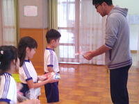 5・6校時に、ラグビーLEAGUE ONEに所属しているNECグリーンロケッツ東葛のチームメンバー3名が来校し、3~6年生を対象とした(3年生は5校時のみ)タグラグビー教室を実施しました。