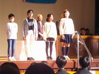 全校朝会を行いました。図書館調べ学習コンクール、水道ポスター、読書賞の表彰を行った後、これまでに語りお願いしてきたことを振り返る校長の話と恒例のじゃんけん大会、赤い羽根共同募金の報告、持久走記録会に向けた吉岡先生の話、最後に全校で今月の歌「The Day」を全校で歌いました。