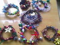 おまけ…2年生が、収穫したさつまいもの「つる」を使ったリース作りをしました。とっても素敵な作品がたくさん完成しました。
