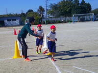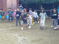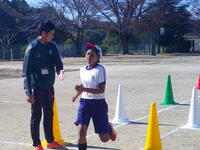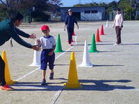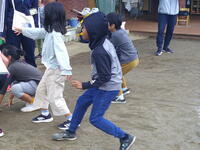 生憎の天気で、持久走記録会の試走も延期となり、外での運動はできませんが、3・4年生が体育館で体育の学習を行っていました。まずは、来週に延期された試走、月末に予定されている持久走記録会本番に向けて、体育館内で持久走練習を行いました。狭い体育館だからなのか、始める前の坂野先生の言葉が効いたのか、普段の外での持久走練習時よりペースがかなり速い子が多かったです。その後、先日NECグリーンロケッツの方々から教わった「タグラグビー」の学習から、タグ取りの鬼ごっこを行いました。ちょっと仕様が変わるだけで、本当に盛り上がるものです。先日の出前授業は、子どもたちにとっても教職員にとっても、良き体験として生かされているようです。