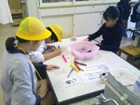 <理科室…プラ板準備⇒試し焼きで作品も作っていました>