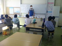 今日の2校時は、保健センターの歯科衛生士さんをお招きし、1年生の歯みがき指導を行っていただきました。指導の流れや要点は、昨日の打越養護教諭が行ったものとあまり変わりはありませんが、1年生は乳歯がたくさん残っている児童が多く、この後生えてくる永久歯に影響が出ないことも含め、鏡で歯の様子を細かく確かめながらの指導でした。欠席者が1名いて残念でしたが、4人の1年生に対して指導・支援にあたる大人も4人で、本当にきめ細やかな歯みがき指導を実現することができました。