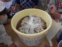 白幡様、戸辺様、野田市農政課の方を講師として迎え、4年生が昨年度に仕込んだ味噌の「天地返し」を行いました。「天地返し」は、」「切り返し」とも言って、仕込み桶の上部と底面の発行具合を均一にして発酵ムラを無くすとともに、発酵を促進し、味噌の状態を確認することもできます。福二小では、昨年度初めて味噌の仕組みを行ったということですが、講師の先生からは「とてもよくできています。美味しい味噌ができますよ。」とのお言葉をいただきました。出来上がりが楽しみです。