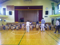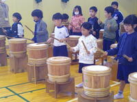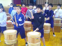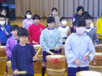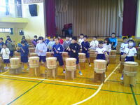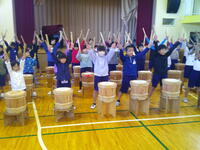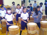 先日は、樽太鼓演奏の全校練習の様子を掲載しましたが、音楽専科の大舘先生の指導の下、どの学年もめきめきと上達しています。今日は、4年生の演奏の様子を見せてもらいましたが、演奏そのもだけでなく「構え」や「かけ声」、「バチを跳ねるようにして打つこと」、「決めのポーズ」と細かいところまで、丁寧に指導されていました。この1時間だけでも子供の成長がはっきりとわかるというのは、本当にすごいことです。本番での演奏が楽しみです。