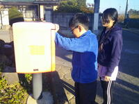 にじいろ学級と1年生が、学校近くの旧平佐屋商店にある郵便ポストに、年賀状投函の校外学習に行ってきました。霜が降りた畑の様子や、たくさん落ちていた空っぽの栗のいが、枯れて茶色になった草っ原など、夏とは全く違う風景を確かめながら歩きました。1年生はポストへの投函は初めて!!という子が多く、入れ口が高いことからなかなか大変でしたが、無事に全員投函することができました。