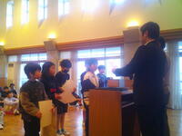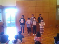 明日から、冬休みが始まるということで冬休み前全校朝会を行いました。まず、持久走記録会・読書感想文コンクール・あおいそら運動実践文・読書賞の4種の表彰を行いました。その後、校長より「自分を好きになり大切にすること」「自分以外の誰かの役立つ体験を積み重ねること」についての話、坂野先生から冬休み中の生活についての心得、計画放送委員会から冬休みのめあてについての話があり、最後にみんなで元気に校歌を歌いました。