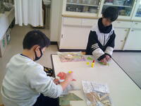 4年生が、図工で木材を加工しての作品作りに取り組んでいます。どんなものを作るかデザインを考えて、木材を切る作業は全員終了し、今は着色と組み立て(接着)の作業に入っています。子どもたちは、本当に図工が大好きです。楽しみながら作っていることが伝わってきました。
