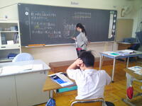 4年生が算数で「大きな数の仕組み」について学習していました。今年度から新規採用で配属された担任と、サポートティチャーの二人体制で、「大きな数」というよりは、「十進位取り法」の総まとめとなる学習に取り組んでいました。