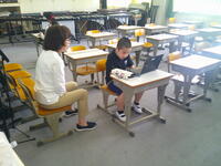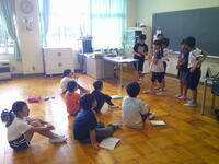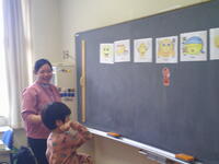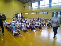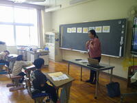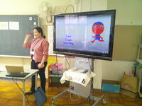 シィーナ先生は、とにかくずっと笑顔で子どもたちの対応をしてくれています。2年生向けの外国語活動なので、読むとか話すというよりも、くり返し聞くこと、真似をして発音すること、体を使って活動(ゲーム)することに重点をおいて進めていましたが、一つ一つの反応や答えに対して「OK!」「Good!!」「Nice!!」など、褒め言葉のシャワーを浴びせていました。「慣れ親しみ、楽しく触れる」ために、最良の方法だと思います。英語が好きになるかどうかはわかりませんが、多くの児童が「英語の学習が楽しい!!」と感じることと思います。