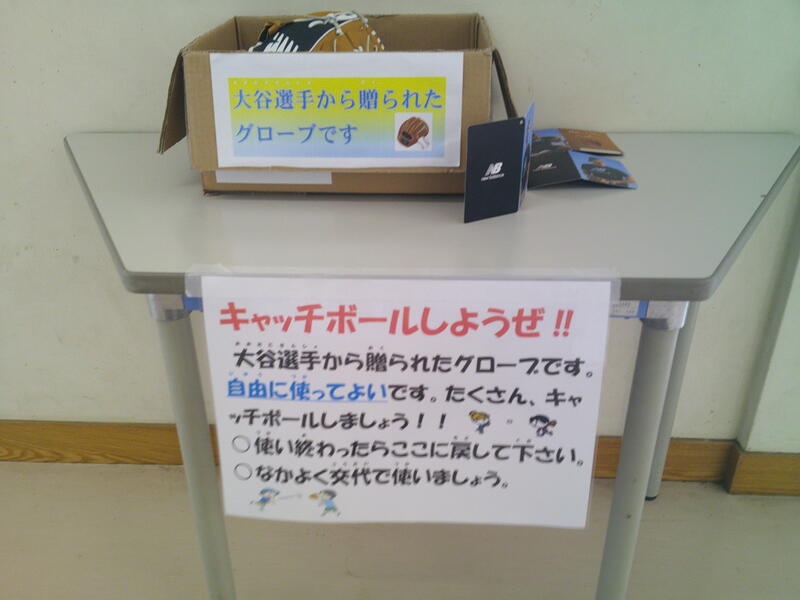 開幕直後からトラブルに巻き込まれて大変そうでしたが、1ファンとして大谷選手の潔白も証明されてホッとしています。福二小にも昨年度末に、大谷選手からのプレゼントグローブが届き、各学年に回してキャッチボール等に取り組みました。今年からは、昇降口の前に常備し、誰でも手軽に手に取って使えるようにしています。