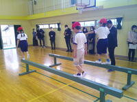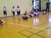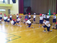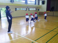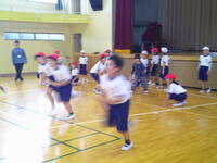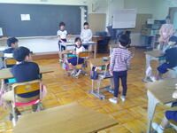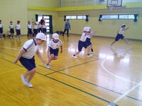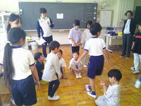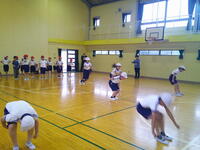 3・4年生の体育学習を見に行きました。給食の検食があるため、前半部分だけの参観となりましたが、吉岡先生がT1,橋本先生がT2で、いろいろな形で脚を鍛える体つくりの運動に取り組んでいました。