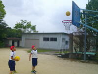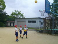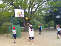 厳密なルールに基づいたゲームにはなっていないのですが、お互いに文句を言うこともなく、セルフジャッジでバスケットボールを楽しんでいます。これがスポーツの原点であり、小学校での在り方として一番良いようにも思えます。まずは、楽しみ、好きになること。いろいろなスポーツに挑戦できると良いですね。