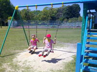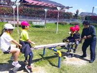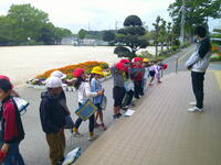 晴天には恵まれたものの、かなりの強風の中11号公園を目的地とした「全校なかよし遠足」を実施しました。出発式と到着式は、強風のため「けやきルーム」で行いましたが、11号公園でのグループ遊びは、無事に予定通り行うことができました。