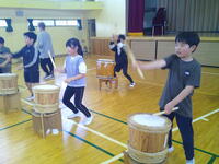 現中学1年生が抜けて、人数が減り、少し寂しくなってしまいましたが、やる気満々で太鼓部の活動がスタートしました。4年生も、立派な(というか大切な)戦力として,演奏に参加しています。指導は、講師の太田満利子先生と大舘先生を中心に、山口先生、坂野先生で行っていきます。今日は、4年生担任の橋本先生も様子を見に来ていて、子どもたちの奏でる迫力ある太鼓の音に驚いていました。