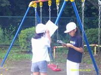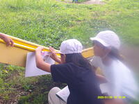 精度は微妙ですが、友だちと協力して一生懸命測定を行っていました。今日は、外での活動がしやすい陽気だったこともありますが、子どもたちの表情も教室で見せる表情以上に生き生きとしていました。