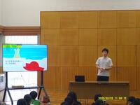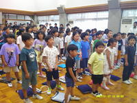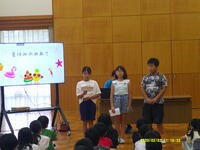 いよいよ明日から夏休です。夏休み前集会を実施しました。今年度1回目の読書賞の表彰の後、養護教諭の打越先生から「SOSの出し方」について、生徒指導主任の伊藤先生から「夏休みの安全な生活」について、計画委員代表から夏休のめあて「う・き・わ」の話、校長から「3つのお願い+1」について、最後に全校で校歌を歌いました。うなずきながら、放す人の目を見てお話を聞くことができる児童が増えたことが実感でき、嬉しかったです。