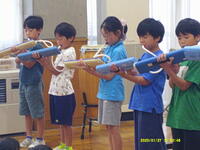 3年生は、初めてのリコーダー演奏に挑戦しましたが、みんなしっかりとした指遣いできれいな音色を響かせていました。「ゆかいな木琴」の木琴とオルガンのハーモニーも素晴らしかったです。2年生は「楽しいね」の曲名通り、すごくいい笑顔で楽しそうに歌っていました。鍵盤ハーモニカもリズムに乗って演奏できていましたが、特に「かえるの合唱」のわかれて追いかけながらの演奏がすごかったです。1年生は初めてのサマーコンサートで、大勢のお客さんの前で歌と演奏を披露しました。緊張したかな?「うみ」の手話が素敵でした。また、タンブリントカスタネットも上手に叩きながら歌えていましたね。