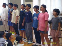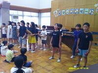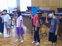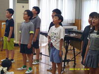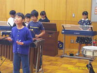 新しく参加した3年生と4年生転入児童も参加し、演奏の様子を見守ったり個別の練習に取り組んだりしていました。休憩時間中も、自分の演奏時の動きをなぞっている児童もいました。また、中学生の先輩も練習に来て見守ると共に、下級生たちを指導してくれました。