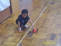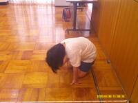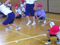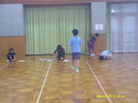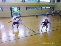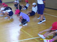 水泳指導の規定の10時間を終え、3・4年生が体育館で「走の運動」を中心とした体育の学習を行っていました。体育主任でもある青木先生の指示に従い、「タッチ&GOダッシュ」「長座からのダッシュ」「胡坐状態からのダッシュ」「カニ歩きからのダッシュ」「GOバック走」等の種目を次々とこなしていきました。走力と調整力を高めることが主目的ですが、3年生女子児童の「見て、校長先生!私こんなに汗いっぱいかいちゃった!!」の言葉通り、運藤量も十分でした。