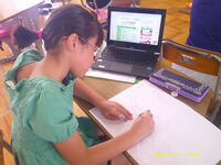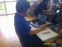 作戦を考えて、ワークシートに書き終えた児童はChromebookを開いて、漢字や計算のドリル学習をしたり、学習サイトを開いて動画を見たり絵を描いたりしていました。入学から4か月弱しかたっていませんが、タブレット端末の取り扱い方も、とても上手になりました。