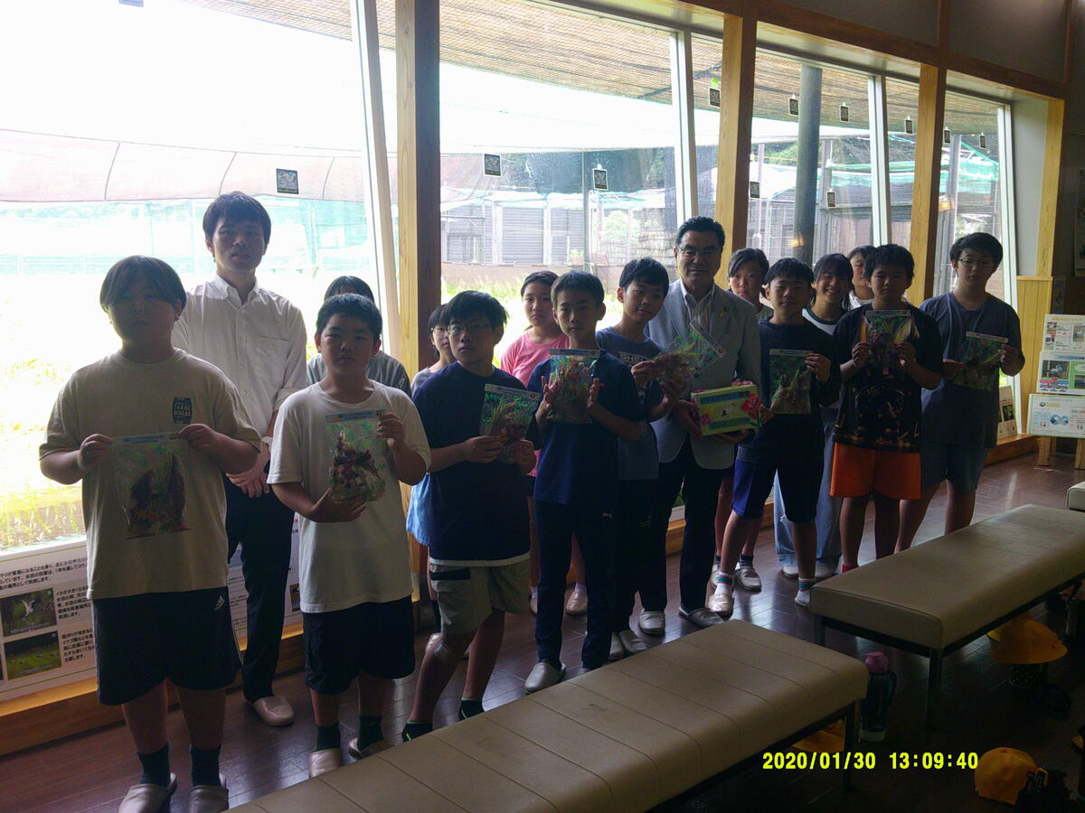 今日は、全校で取り組んでいる福にっこりプロジェクトの中の「ドライフラワーによるコウノトリ募金」の贈呈式に全校を代表して参加しました。集まった募金と、新たな募金用ドライフラワーを鈴木市長に贈呈しました。また、昨年度からの学習成果物や今年度新たに精査記しなおしたポスターをこうのとりの里の職員の方に渡しました。