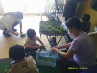 夏休み間近ですが、天候の心配もなく、3年生が枝豆の収穫を行いました。今日の給食で食べられるよう、根を落としし、さや剥きまでしてくれました。