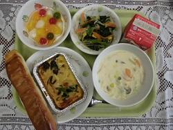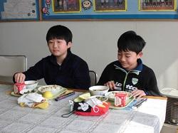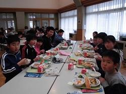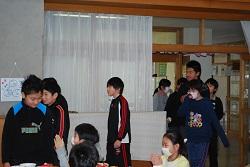 今日のメニューはいつもより豪華です。子どもたちの好きなものがたくさん出ました。6年生はいつも一緒に遊んだり活動したりしている”たてわりグループ”の席に拍手で迎えられました。