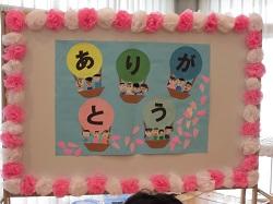 けやきルームには、色画用紙で作った「ありがとう」の文字と、お花紙で作った紅白のお花が飾られています。