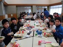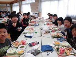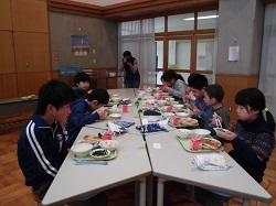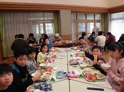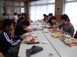 本校では、卒業していく6年生を全校児童と教職員がお祝いの気持ちをこめて、毎年「けやきルーム」で記念の給食会を行っています。