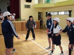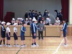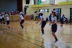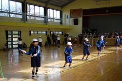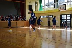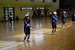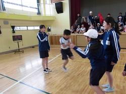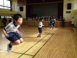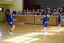 ステージで応援していた下級生は、5・6年生のすばらしい技に釘付けでした。日頃、たてわりグループで一緒に遊んでもらっているお兄さんやお姉さんを応援する子もいました。1・2年生も大きくなったら、お兄さん達のように跳べるようになりたいですね。