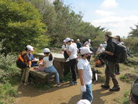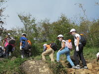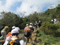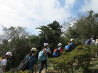 最初の登りは傾斜がきついので、疲れてしまった子もいましたが、だんだんとペースをつかみ登っていました。岩場では、「この木をつかむといいよ。」「こっちの方が上りやすいよ。」など、上級生が下級生に声を掛けたり、友だち同士声を掛け合ったりする場面も多くみられ、助け合いながら全員が頑張ることができました。頂上は、とてもいい景色でした。