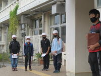 10月に入りようやく練習ができるようになった太鼓部です。運動会に向けて、初めて校庭で練習を行いました。太鼓を置く位置、入場の仕方、待ち方、挨拶の仕方、演技、退場の仕方を練習しました。いつもの体育館での練習とは、勝手が違う太陽の下での練習でした。例年と違い、極めて少ない練習時間で運動会本番を迎えます。特に6年生にとっては最後の運動会です。頑張ってほしいと思います。