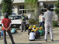本日、下校前に、1.2年生の防犯安全教室を実施しました。市の担当の方と青パトロールで児童の登下校時に、見守りの巡回をしてくださっている方が来てくださり、話をしてくださいました。