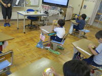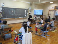 1年生は、「とけい」の学習でした。何時、何時半の学習をしました。テレビ画面に映し出された時刻を自分の時計で表す学習です。どの子も、集中して学習に参加していました。