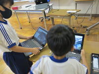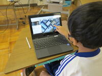 本日の2年生と1年生の学習の様子を紹介します。2年生は、来週行く「野田南図書館」について、クロ―ムブックのインターネット機能を使って調べる学習をしました。ローマ字打ちで検索して、図書館の様子を調べ地図を出して確かめるなど、友だちと協力し合って確認しました。中には、グーグルアースで自分が通った保育園や幼稚園を見つけた子もいて、喜んでいる姿が印象的でした。