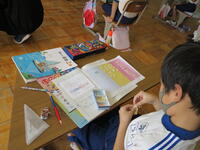 本日、1年生と2年生が市バスの「あさかぜ号」で、南図書館に行きました。南図書館では、読み聞かせをしていただいたり、施設の使い方を丁寧に教えていただいたりしました。また、実際に本を選んで借りる体験もしました。今日借りた本は、2週間借りることができます。返却は、ご家庭にお任せすることになります。お手数ですが、よろしくお願いいたします。
